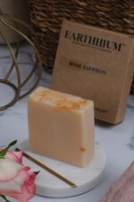 Rose Saffron is a luxurious, handmade soap infused with the elegance of rose and the richness of saffron. Crafted using the cold process method, it gently cleanses and nourishes the skin, leaving it soft, radiant, and delicately fragrant.